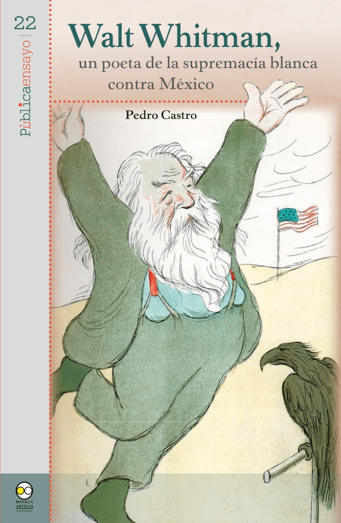 Walt Whitman: Un Poeta de la Supremacía Blanca Contra México,1 cuyo autor es el Dr. Pedro Castro Martínez,2 doctor en Historia y profesor catedrático en la Universidad Autónoma Metropolitana, fue publicado por la editorial Bonilla Artigas Editores en la Ciudad de México, corría el año de 2022. Cabe la nota de que Bonilla se presenta como “una editorial académica que publica y distribuye trabajos de investigación realizados en instituciones de educación superior, a fin de dar a conocer el conocimiento generado en México y otros países de habla hispana.”3